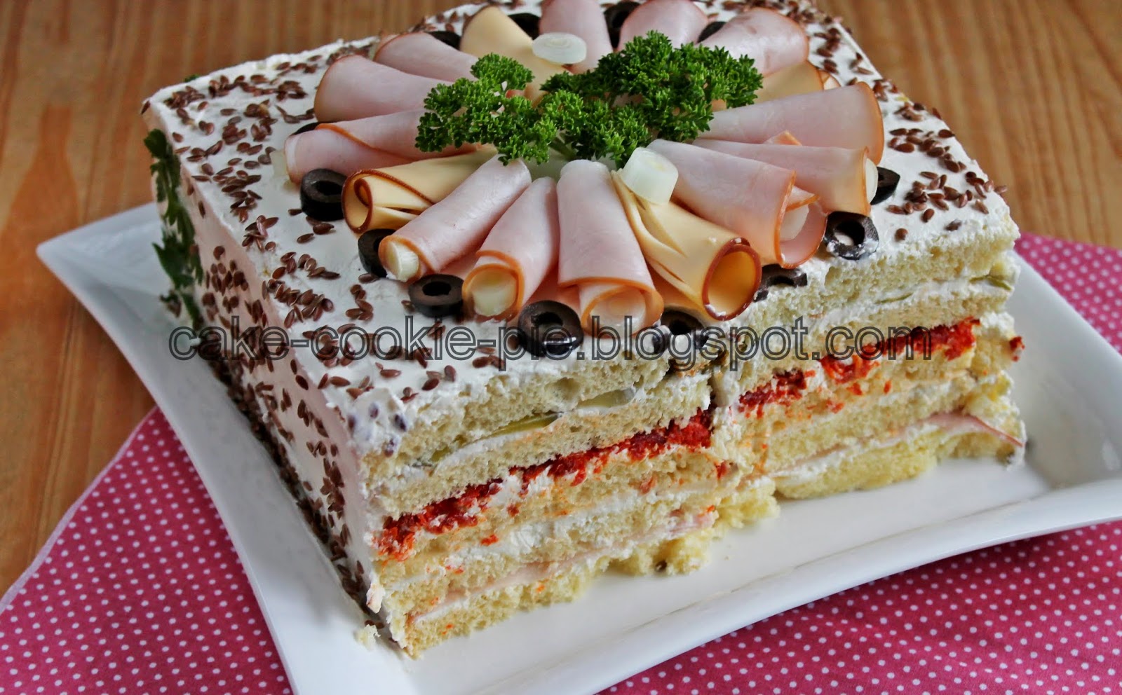 Ako malo škicnete u arhivu ovog mjeseca, vidjet ćete da su svi objavljeni recepti slani. To se još nije dogodilo i baš mi je drago da se prvi put dogodilo u mjesecu u kojem slavim treći rođendan bloga. Kad sam razmišljala što pripremiti za proslavu blogorođendana, htjela sam napraviti nešto čime još nisam obilježila rođendan i odmah mi je na pamet pala slana torta. Ovakva torta je odličan završetak slanog mjeseca. Brzo se radi, namirnice se mogu prilagoditi vlastitom guštu, a opet torta je i izgleda efektno.