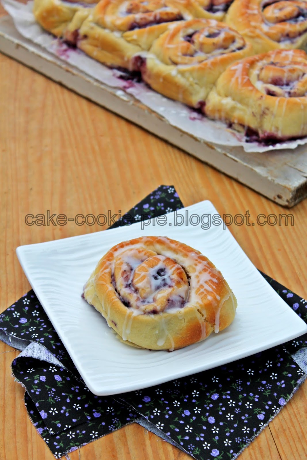 This month the Daring Bakers kept our creativity rolling with cinnamon bun inspired treats. Shelley from C Mom Cook dared us to create our own dough and fill it with any filling we wanted to craft tasty rolled treats, cinnamon not required! So I decided to give a new taste to cinnamon rolls dough by substituting apples and cinnamon with blueberries and cheesecake filling. It was so delicius. Thank you Shelley for this wonderful and delicious challenge!