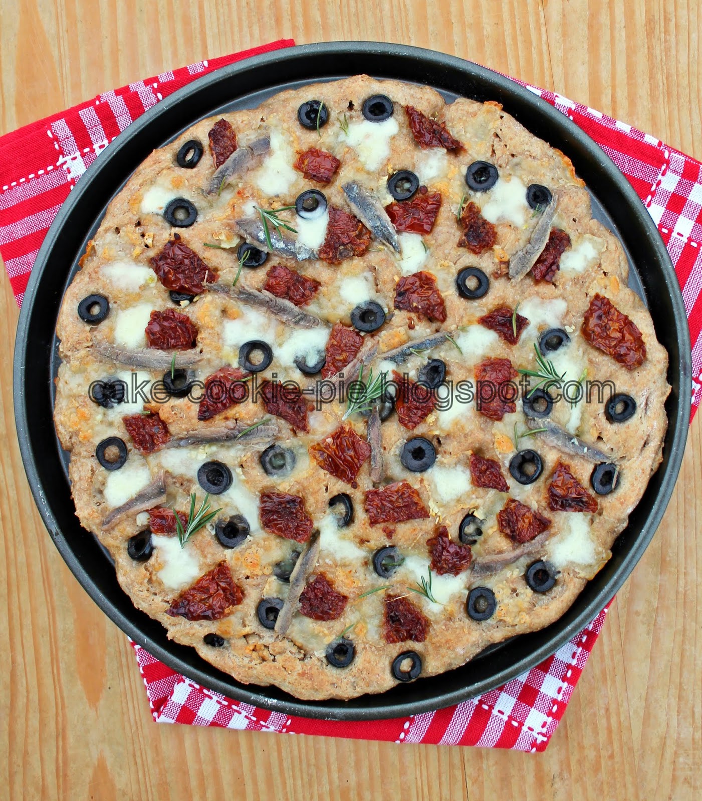 Integralna focaccia s mozzarellom, sušenim pumidorima i crnim maslinama