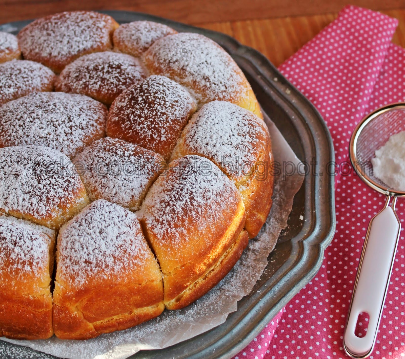Već sam ranije kroz postove spomenula da sam slaba na pogače. Obožavam njihov okus, uživam u izradi i njihovom izgledu. Stoga sam morala isprobati ovu pogaču. Jako je ukusna! U odnosu na original napravila sam neke izmjene - smanjila sam količinu maslaca za premazivanje tijesta, a imam i jednu zamjerku - bila sam na čudu koliko soli staviti u tijesto, budući da se u originalu koristi slani maslac kojeg kod nas nema. Na kraju sam bila sretna, jer je pogača bila taman dovoljno slana za naš gušt.